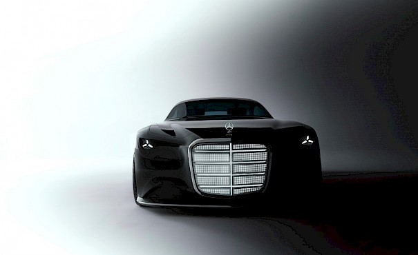 Na první pohled zaujme dramatická silueta s extrémně protáhlou kapotou, lehce taženou zádí a hlubokou, lesklou černou karoserií. Designéři se nechali inspirovat reprízami legendárních modelů — proporce a tvar blatníků připomínají vozy jako 540 K Autobahn-Kurier nebo 300 SL. Upravený, moderní výklad těchto forem doplňuje nová maska chladiče — vysoká, vertikální, obrovská a vybavená LED osvětlením i digitálními prvky.