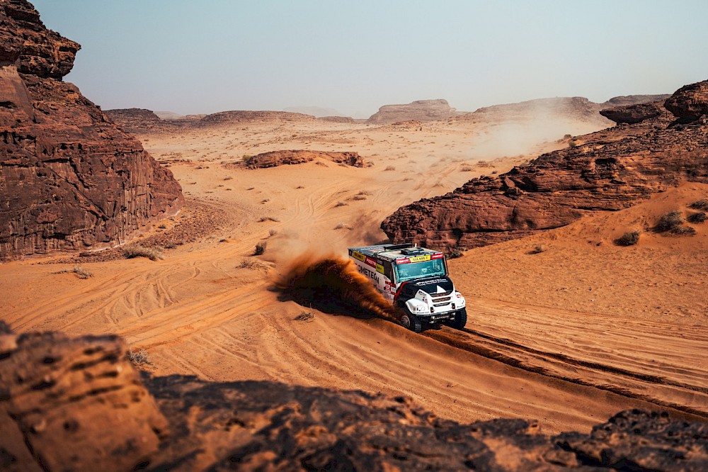 Ačkoli v kategorii motocyklů zažili Češi příšerný den, mezi kamiony fanouškům vše vynahradili. Dvojnásobný vítěz Martin Macík totiž dosáhl na první letošní etapový triumf. Druhého Mitchela van den Brinka dokázal porazit o 12 sekund a 49 vteřin. To vzhledem k předchozí ztrátě znamená jediné – závodník ze Sedlčan se stává novým vedoucím jezdcem průběžného pořadí. Van den Brink nyní ztrácí 4 minuty a 28 sekund. Ztráta třetího Aleše Lopraise činí půl hodiny.