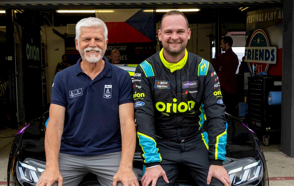 Spolu s českým prezidentem usedl do kabiny závodního vozu také Martin Doubek. Rodák z Litomyšle se v evropských NASCAR stal už dvakrát šampionem nižší kategorie Open (2021, 2024). Před domácí diváky v Mostě letos přijíždí jako druhý muž průběžného pořadí. Kromě třídy Open ho uvidíme také v závodech elitní kategorie PRO. Tam nastoupí i nováček Michal Makeš, který bude druhým českým zástupcem na roštu.
