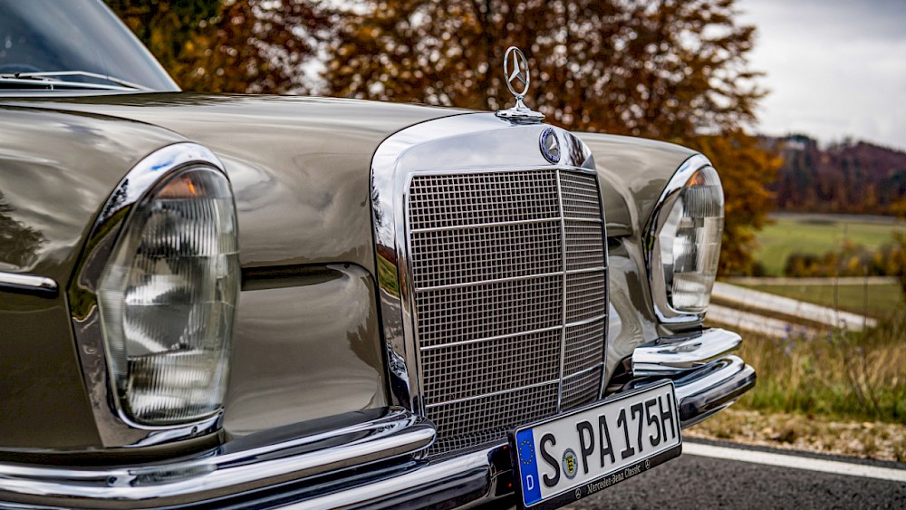 Design měl na starost Paul Bracq, jehož rukopis v sobě spojil funkčnost s jemnou noblesou. Typická maska chladiče dostala téměř čtvercový tvar, střechu snížili, skla rozšířili. Výsledek? Nadčasový vzhled, který nestárne ani v konkurenci současných vozů. Už tehdy šlo o nejprodávanější limuzínu své třídy a zároveň předchůdce pozdějších vozů označených jako třída S – od roku 1972 známých pod modelovou řadou 116.