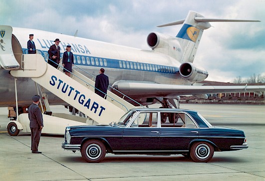 Vedle vzhledu zaujal i technikou. Všechny verze měly kotoučové brzdy na všech kolech, omezovač brzdné síly vzadu i hydropneumatickou korekci výšky pro jízdu s nákladem. Pohon obstarávaly výhradně šestiválce, některé s mechanickým vstřikováním Bosch. V roce 1969 se ale objevuje přelomový 300 SEL 3.5 s osmiválcem M 116, objemem 3,5 litru a elektronickým vstřikováním D-Jetronic. Pro americký trh přichází i sesterský motor M 117 s objemem 4,5 litru. Bylo to poprvé, co Mercedes použil osmiválec ve velkosériové výrobě.