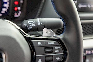 Velkou pozornost si zaslouží funkce Honda S+ Shift. Ta vytváří iluzi klasického automatického řazení: zvuk motoru, otáčky i reakce na plyn se mění podle volby „virtuálních“ osmi stupňů. Pomocí páček pod volantem může řidič řadit podobně jako u manuálu, včetně jemného brzdění motorem při podřazení. Nejde o hru na sport, spíš o snahu nabídnout větší zapojení do jízdy – přesně to, čím starší Prelude kdysi bavilo.