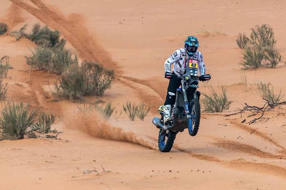 Sam Sunderland, který do nedělní etapy vstupoval jako vedoucí muž celkového pořadí, skončil až dvacátý osmý. Matthias Walkner, který byl před volným dnem druhý, porazil Sunderlanda o čtyři příčky a skončil dvacátý čtvrtý. Ještě hůře ale dopadl Daniel Sanders, Sunderlandův týmový kolega u stáje Gas Gas, který se díky vítězství v páteční etapě posunul na třetí místo, totiž boural už cestou na start měřeného úseku a byl převezen do nemocnice. Vyšetření odhalilo zlomeninu levého lokte a zápěstí a závod tak pro něj končí. Loket by mu měl být v pondělí operován. Adrien van Beveren, který v pátek spadl čtvrtou pozici, skončil v neděli desátý. Jeho týmový kolega u Yamahy Ross Branch se v neděli vrátil do soutěže, ačkoli se po jeho páteční havárii zdálo, že končí. V neděli obsadil 12. místo.