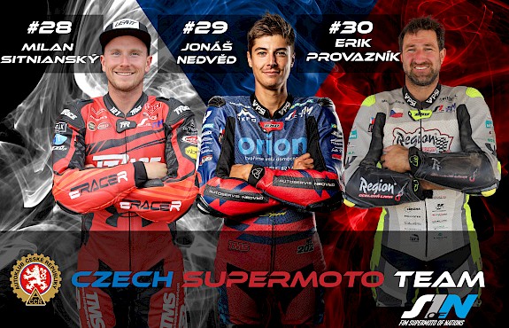 Český národní tým pro FIM Supermoto of Nations 2025 je připraven. Do domácího závodu, který se pojede 27. a 28. září ve Vysokém Mýtě, nastoupí Milan Sitnianský, Jonáš Nedvěd a Erik Provazník. Trojice zkušených jezdců je stálicí světového šampionátu S1GP a podle manažera Davida Novotného představuje silnou sestavu. „Národní tým jsme složili z velmi zkušených závodníků s lídrem Milanem Sitnianským. Všichni tři jsou účastníci mistrovství světa, takže věříme, že společně s nimi můžeme dosáhnout na přední příčky. Největší odměnou by pro nás bylo samozřejmě pódium před domácími fanoušky,“ řekl manažer české reprezentace David Novotný.