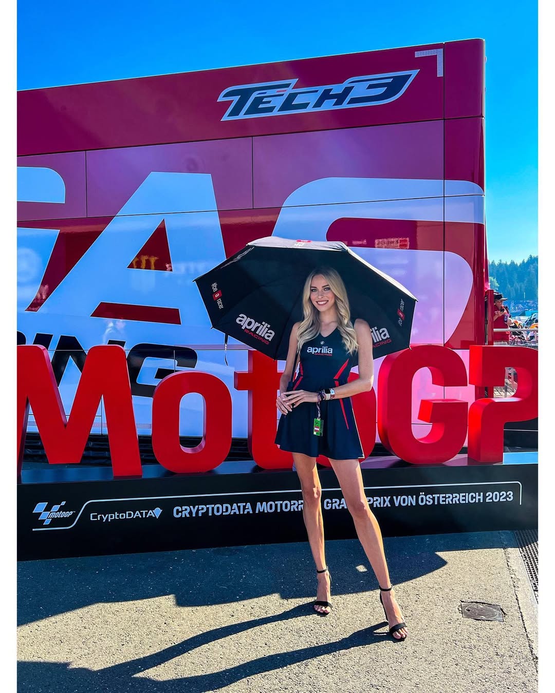 Začínala jsem s Aprilií. Obvykle práce neodmítám, ale byla jsem tehdy trochu sobec a chtěla jsem se dostat do MotoGP. Už jsem tam měla cestu s nizozemskou agenturou a v roce 2023 jsem měla být na Red Bull Ringu s CryptoData, které to sponzorovalo. Tam asi vždy 10 holek stojí podél roštu. Klient mě tam chtěl a byla jsem na tuto práci potvrzena. Pak se mi ale ozvala italská agentura, jestli bych nemohla k Aprilii, kde bych držela deštník jednomu z jezdců. Takže jsem udělala, co jsem snad nikdy neudělala a zrušila jsem práci pro nizozemskou agenturu.