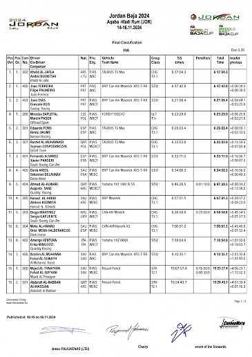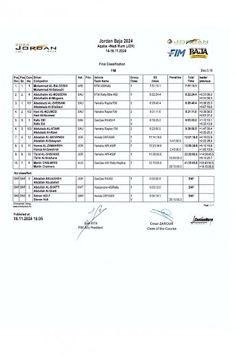 Baja Jordánsko přinesla mezi automobily triumf Khalidu al-Jaflovi. Na druhém místě skončil Joao Ferreira a na třetím Joao Dias. Český jezdec Miroslav Zapletal obsadil čtvrtou pozici.